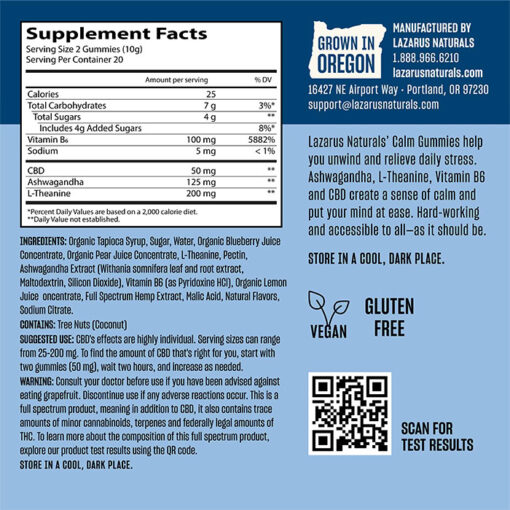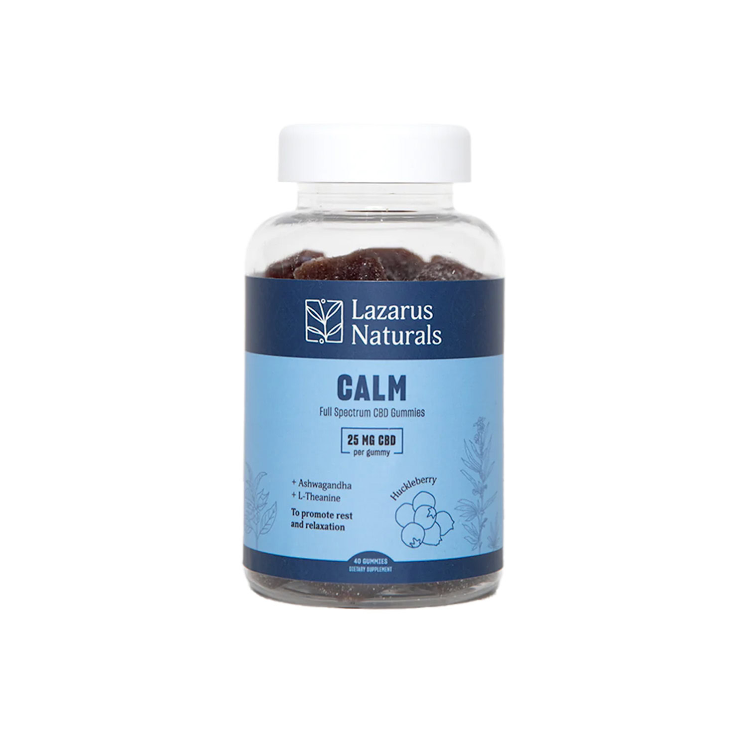 Lazarus Naturals CBD Calm Gummies, Huckleberry, Full Spectrum, 40ct, 1000mg CBD