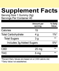 25mg CBD per gummy.